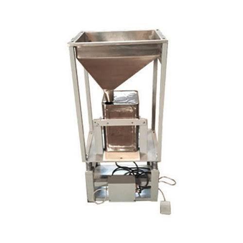 TIN FILING MACHINE Application: Kernel are filled in to the tins by vibratory filling machine Specification: Tin filing machine available with different capacity with 1 or 4 or 8 Tin at a time.